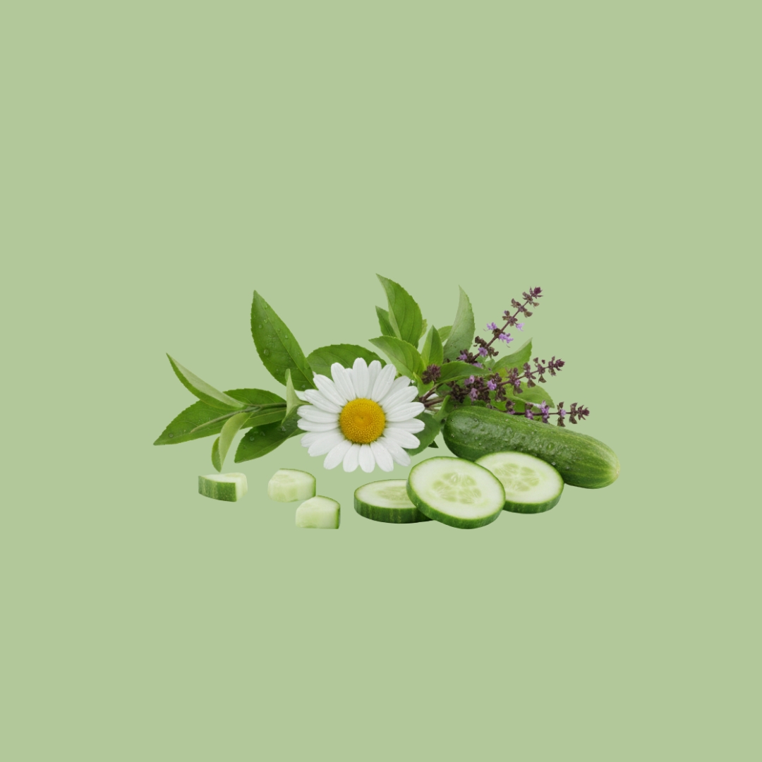 Tea-Tree Hydrosol, Lavender Hydrosol, Extracts (Tulsi, Chamomile, Cucumber, Aloevera, Neem, Green Tea, Turmeric), Niacinamide, Distilled Water, Glycerin, Xanthan Gum, Natural Preservative - Geogard ECT